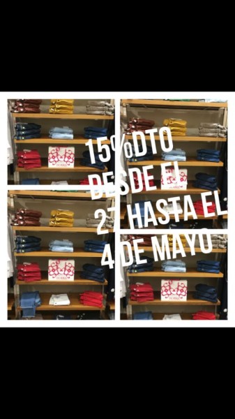 Desde el dia 27 de abril gasta el 4 de mayo , 15% descuento en pantalones.